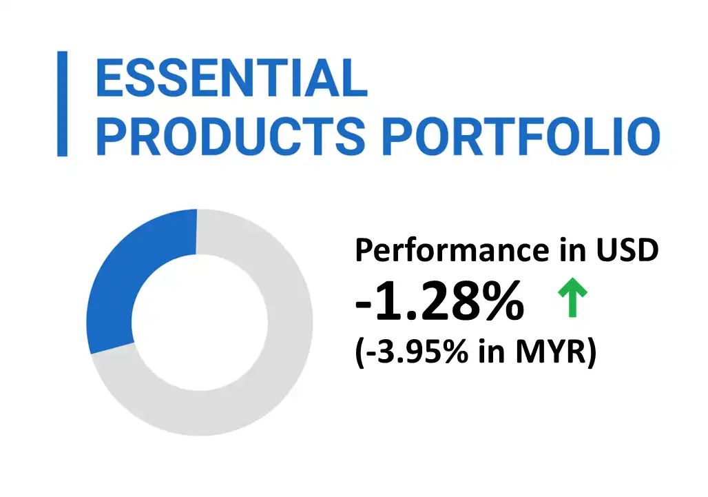 MYTHEO’s Essential Products portfolio was down by -1.28% (-3.95% in MYR) in April 2025.