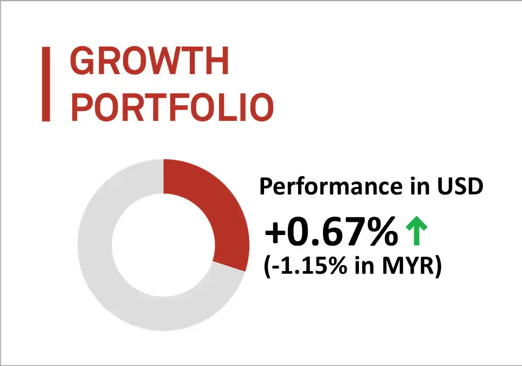 The Growth Portfolio extended its positive momentum to eight consecutive months in USD terms. However, a sharp appreciation of the MYR resulted in a second consecutive month of negative performance when measured in MYR.